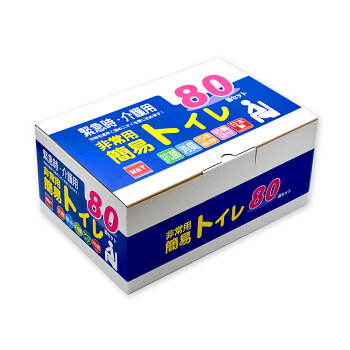 商品説明サ イ ズ 〇 幅 25.5cm 奥行き 17cm 高さ12cm (重量:約1950g) 素 材〇抗菌性凝固剤:高分子抗菌ポリマー 〇排便袋(黒) 650ミリ×500ミリ:ポリエチレン〇大型防臭袋(乳白)650ミリ×800ミリ:ポリエチレン、PET 〇取扱説明書:紙 内 容 品〇抗菌性凝固剤×80個(アルミパック)〇排便袋(黒)×80枚〇大型防臭袋(白)×3枚〇取扱説明書×1枚 商品説明 非常用簡易トイレ80は地震などの災害時による断水時やドライブ中の渋滞・アウトドアや介護などの 緊急時の排泄問題を解消する為に開発された、水がなくても使用できる簡易トイレセットです。